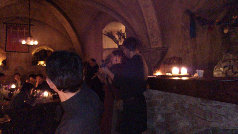 そのガイドさんに連れられて、旧市街の地下のレストランで晩飯。民族楽器の生演奏な店だった。