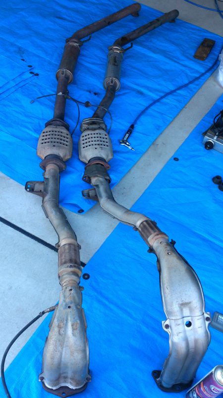 で、触媒は、2号機の方がきれいっぽいので2号機のを使おうと思ったら、1号のフロントパイプと触媒をつないでるボルト・ナットをなめてしまった。インパクトで完全になめてしまった。orz なので、触媒は1号のをそのまま使うことに。