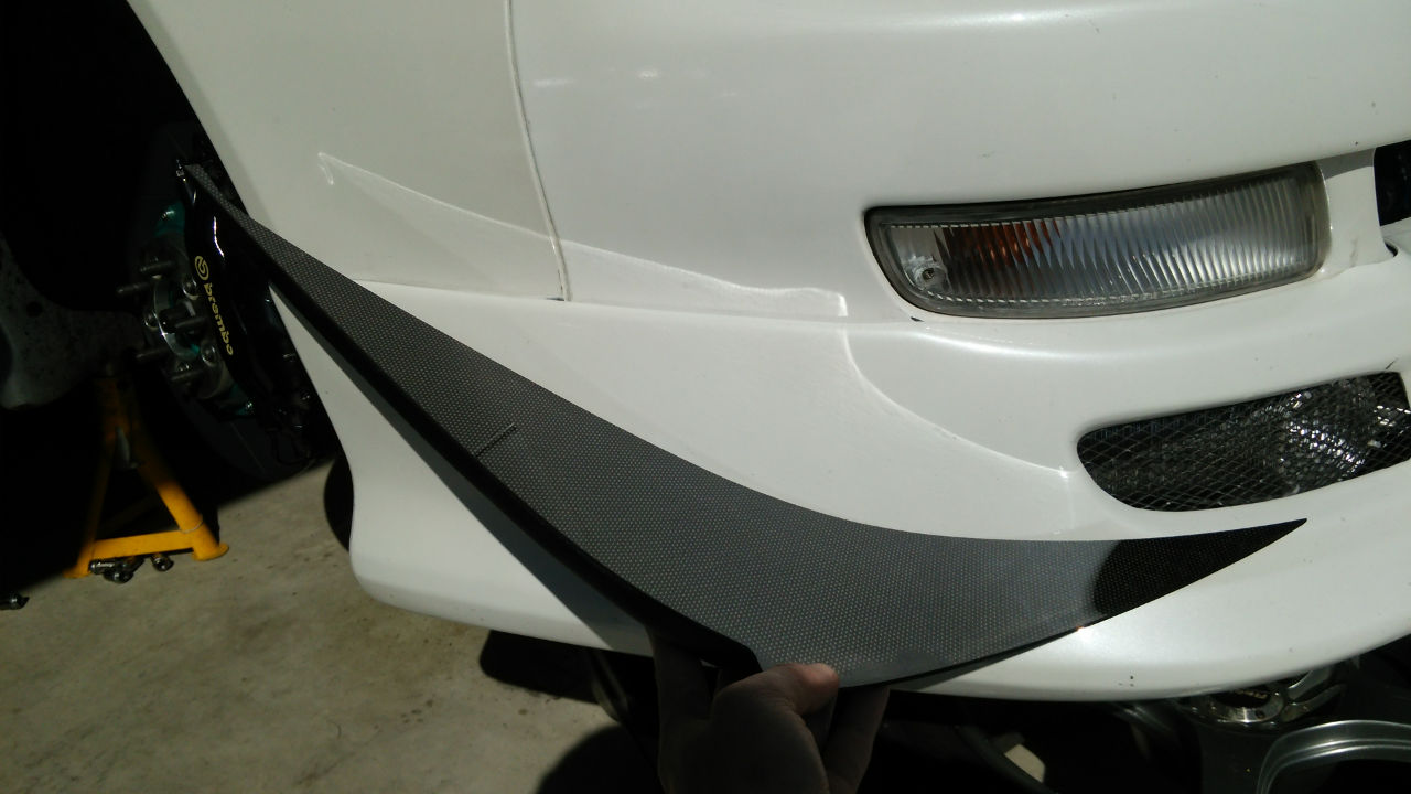 先週に引き続きの車イジリ。今シーズンの秘密兵器、カナードを装着した。FRPの安いやつにしようかと思ったけど送料がバカ高かったので、別のショップのカーボンのヤツにしてみた。