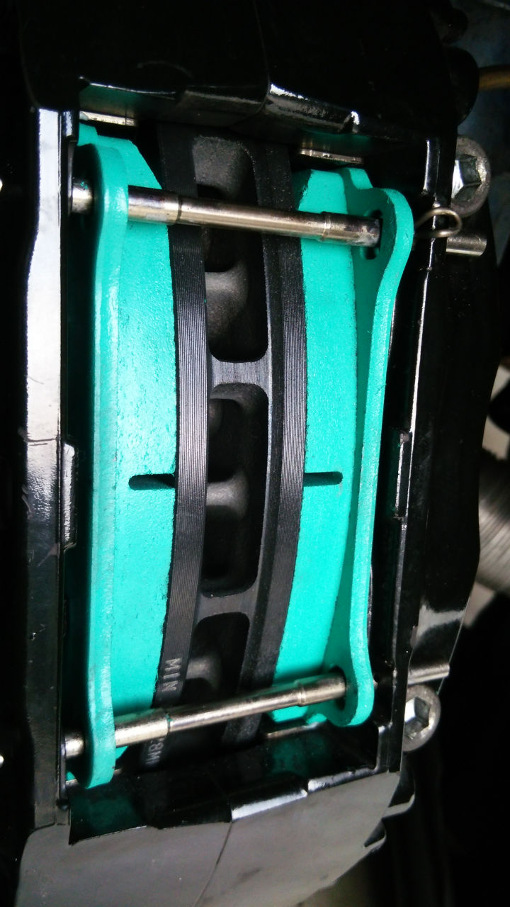 あと、ブレーキの位置も微調整。最終的に、ナックル側に1.6mm キャリパー側に1.0mmのワッシャーを挟んでジャストフィット。