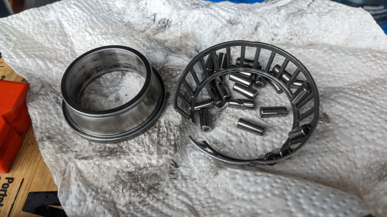 で、取り外したベアリングは、ローラー部分をぶった切って、インナーレース部分は新品圧入時の治具としてキープする。
