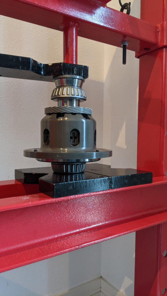 そして、インプットシャフトのオイルシールを打ち換えて(ちょっと奥まで行き過ぎてしまった(汗))、デフのサイドベアリングのアウターを圧入する。