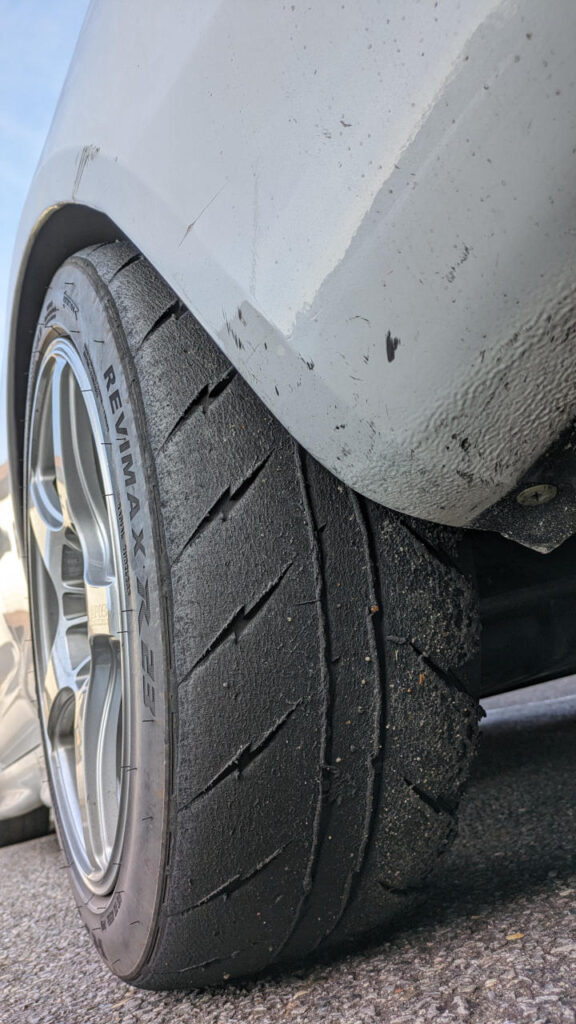 CR-Sはそろそろ終了かなあ。新品A052(255/40R17)のリアにはグリップ不足だろうなあ。そして、リヤのシバタイヤ(TW280)もまだ溝残ってるけど、以前のような滑ってもコントロールできるって感じが薄れて頼りない。路面温度のせいかなあ。いずれにせよ新品A052に合わせるリヤタイヤを調達せんとな…。
