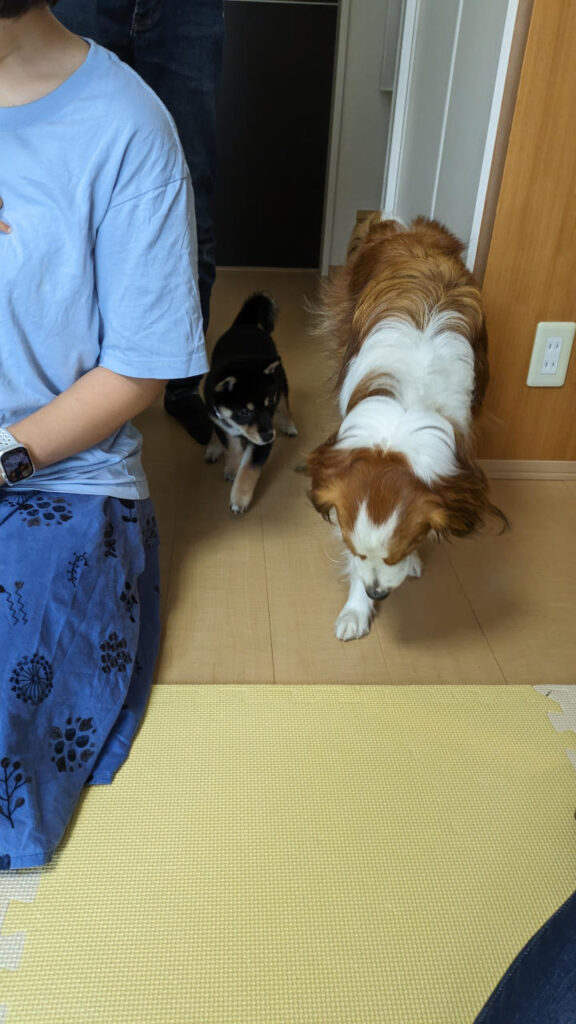 ウチの子はワクチン1回しか済んでなくてまだお散歩デビュー前なので、去年ウチで預かったワンコのお宅を訪問して、犬社会の厳しさを教えてもらいに行ってきた。