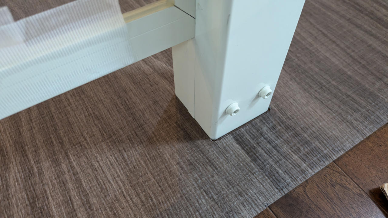 さて肝心の滑り止め効果だけど、作業中の手触りや裸足で歩いた感じはフローリングと大差ないんじゃないかと思ったけど、テーブルの脚とか置いてある物の滑り具合は明らかに違う。クイックルワイパー的なモップが全然滑らなくなった。
