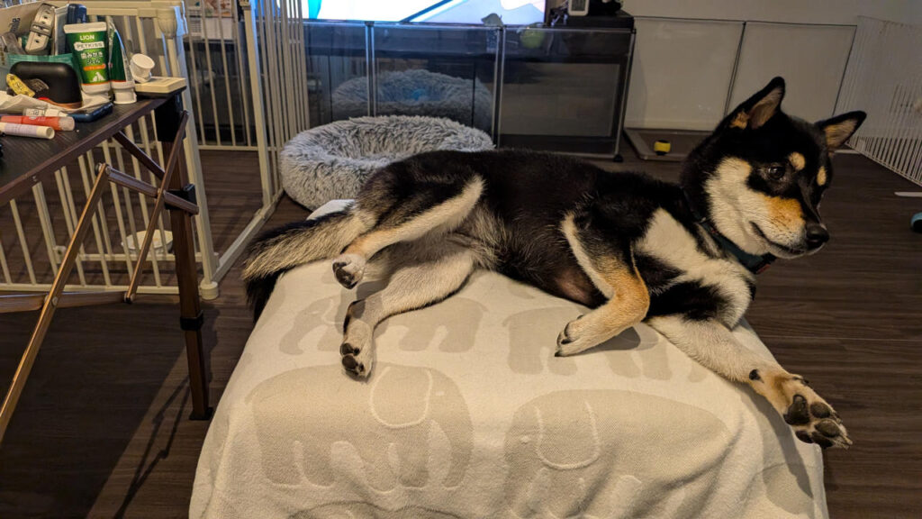 ソファーとお揃いのオットマンを買った。 いつの間にか生地が受注生産扱いになってて2カ月ぐらい待たされたけどようやく届いた。エレファントソファって名前だから定番の生地だと思うんだけどな。 で、さっそく黒柴チェック。 黒柴のホリホリから生地を守るため、布を掛けたらこんな感じ。なんか昂っていたw なんか気に入ったようで、オットマンが定位置になったようだ。 共有: Facebook で共有するにはクリックしてください (新しいウィンドウで開きます) Facebook クリックして X で共有 (新しいウィンドウで開きます) X