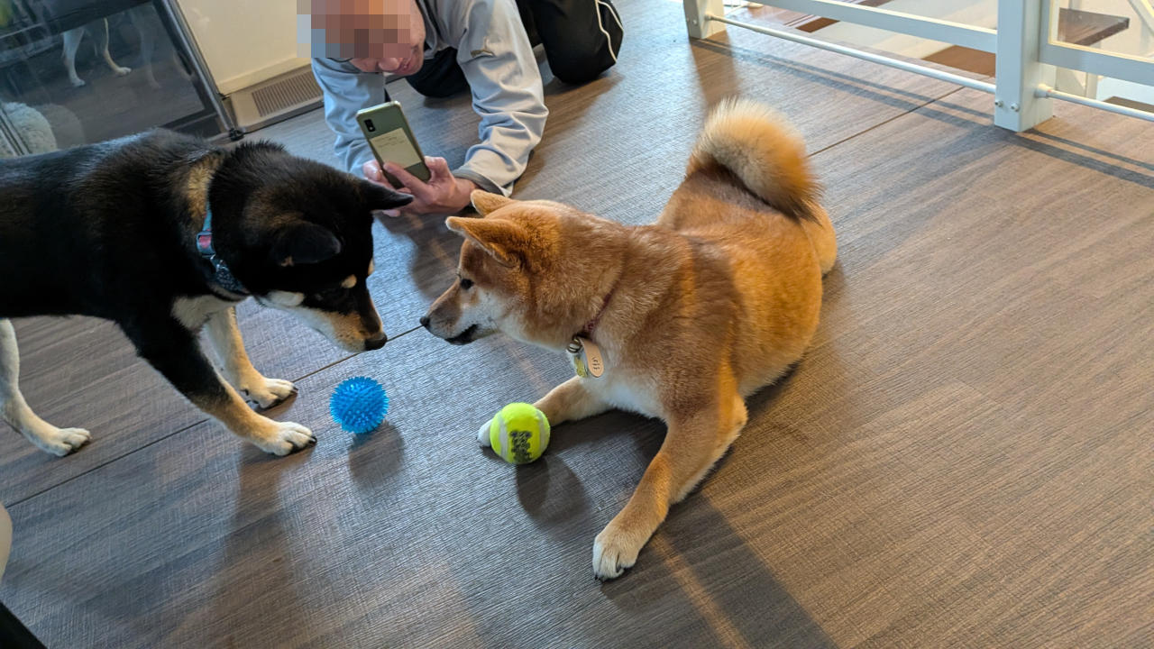 ウチの黒柴に感化されて飼い始めたというお隣の赤柴ちゃん、すっかりウチの黒柴と仲良しで、顔を合わせるたびにお隣の人工芝のお庭に入れてもらってワンプロしまくり。