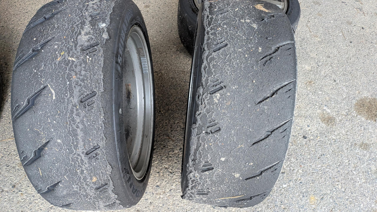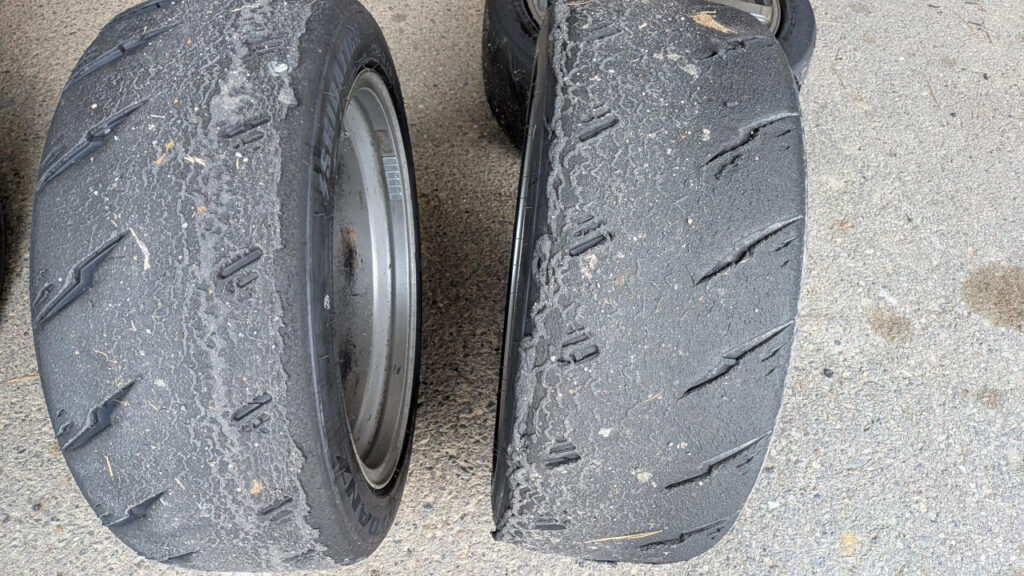 そういえば、フロントはあんまりタイヤカス付いてなかったけど、リヤはそれなりについてた。しかも左右で付き方が違う。こりゃキャンバーずれてるな。(´・ω・`)