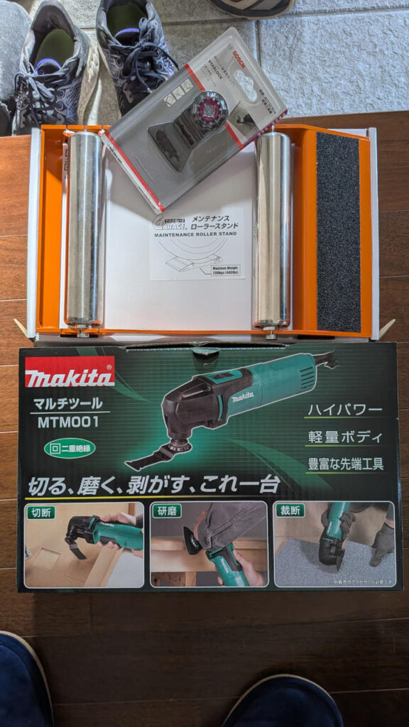 選んだ道具はマルチツール。しかもケチって100V電源のヤツ。どうせ自宅ガレージでしか使わんと思うので。