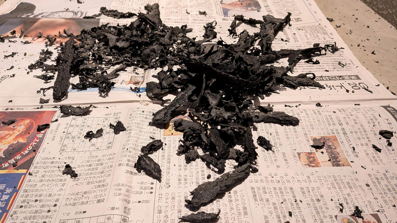 タイヤのゴムは、温まると柔らかくなって、その後冷えると当然固くなるけど、それを繰り返すうちに硬化していくって話だから、ホントは熱が加わらないうちにタイヤカスをやっつけちゃわないといけないんだろうな。