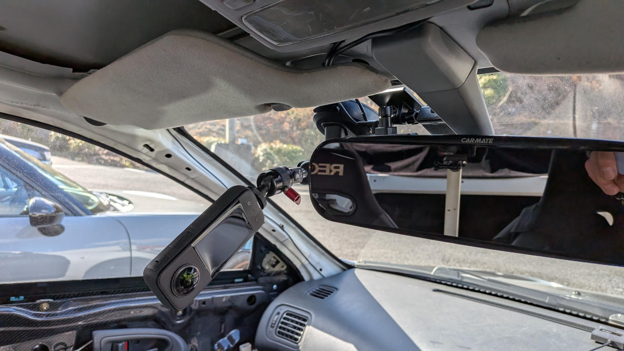 一方360度カメラのX3は、元々手元にあった古い360度カメラの天頂補正がブレーキングやコーナリングのGに引っ張られて傾くので車載には全く向かなかったのに対して、映像からも補正が効いてるようで結構マトモ。