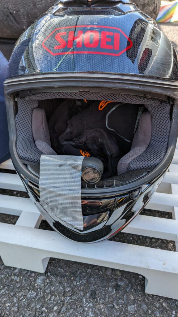 GO 3Sはヘルメットに取り付けてみた。養生テープでww