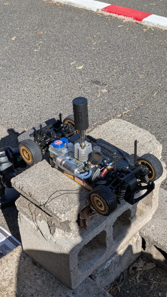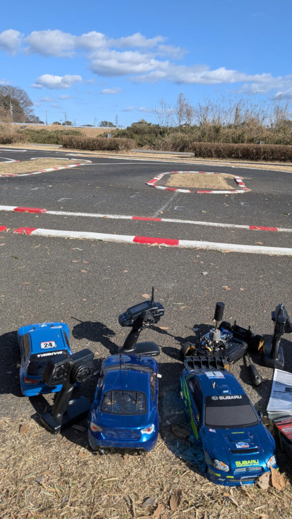 しかし、みんな数年ぶりに引っ張り出してきたラジコンなので何かしらトラブルを抱えていて、充電したつもりのバッテリーが死んでて全く走らず、たまたま俺が持ってたスペアのバッテリーを刺したら無事に走り出したけど、途中で俺が運転させてもらってたら縁石に乗り上げた拍子にたぶんモーターのピニオンギヤが外れて空転しちゃってリタイヤしたり、知り合いにもらったというエンジンカーの初走行と思ったらガソリンが死んでたのか全くエンジンが掛からず、とか、プロポの電池切れとか(爆