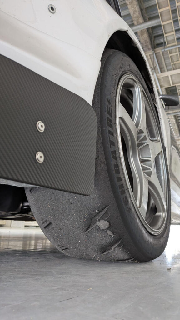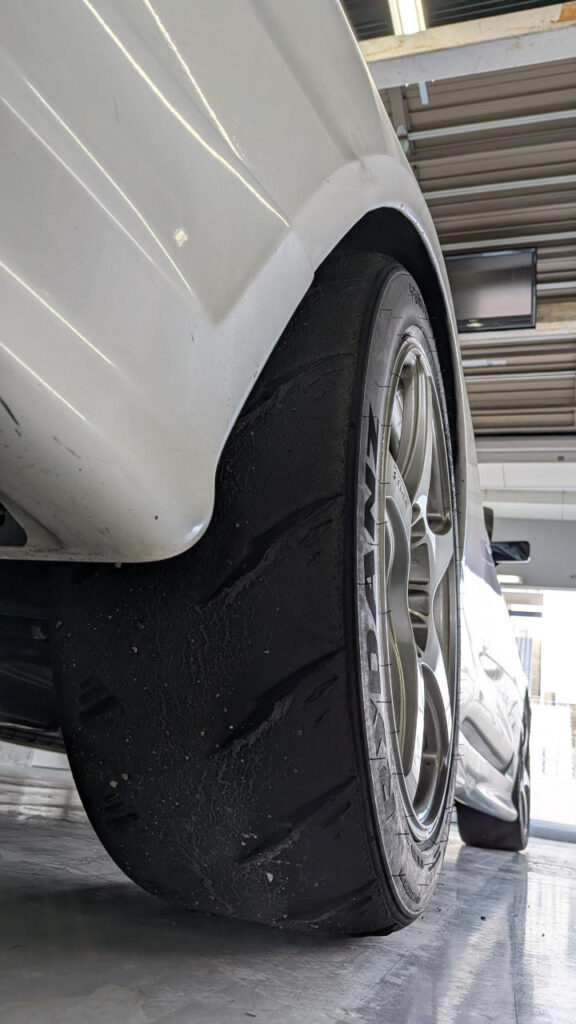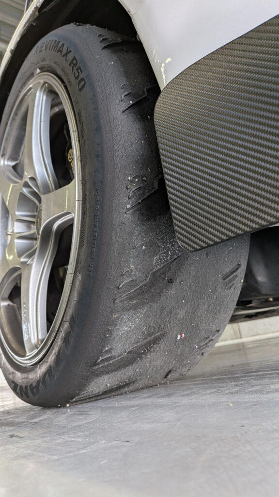 ただ、フロントは結構ショルダーまで使っていて、そんなにアンダー出したつもりはなかったんだけど、タイヤの使い方としてこれでいいのかちょっと自信がない…。