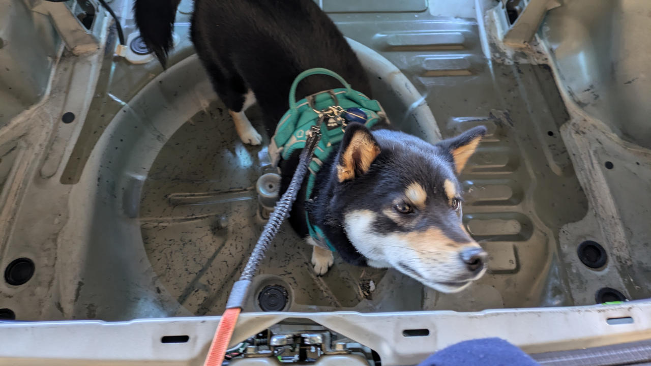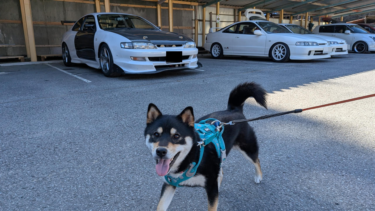 走行後、片付け中に何故かドンガラトランクに放り込まれた黒柴。でも特にオモシロいことは発生しなかったw。
