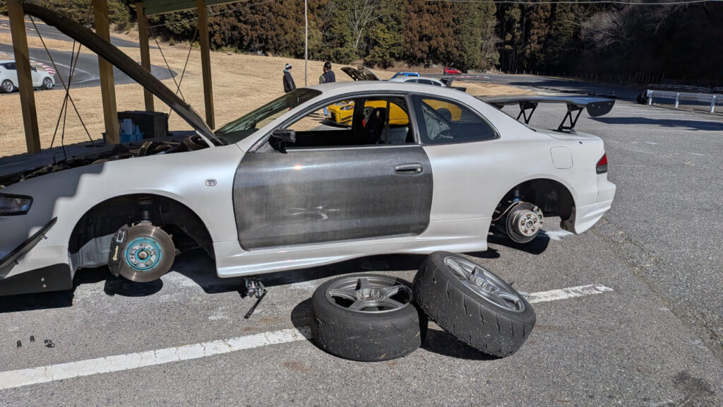 朝イチを狙っていたけど開き直って10時枠にエントリーしてのんびり準備することにした。そして今日はカナードを装着。ミニサーキットならドラッグも気にならんと思うので、ハイダウンフォース仕様。