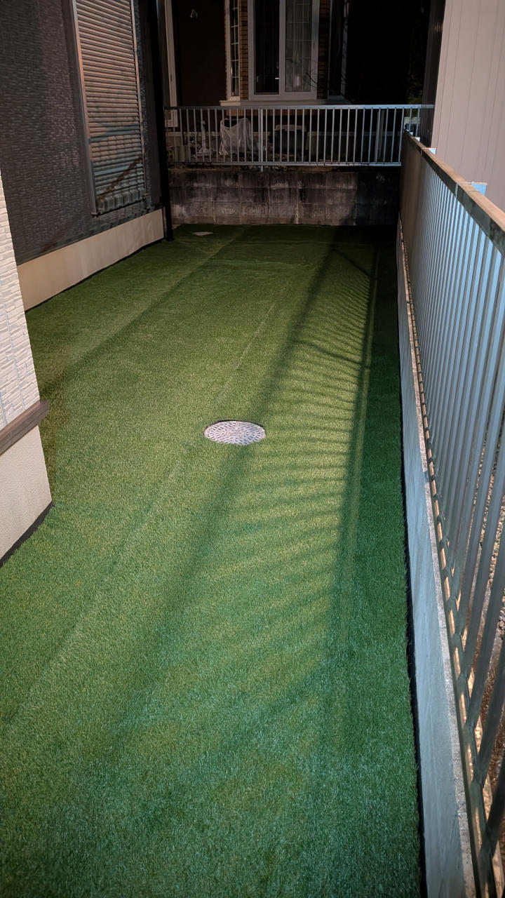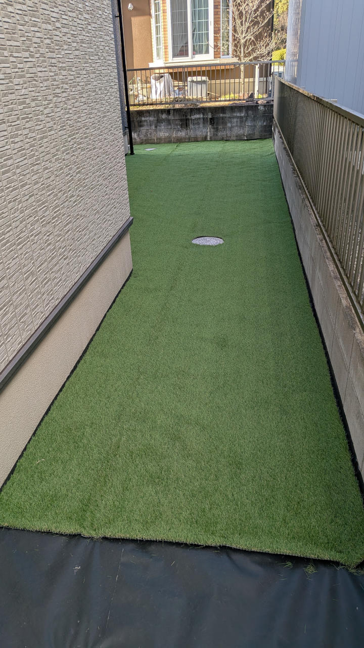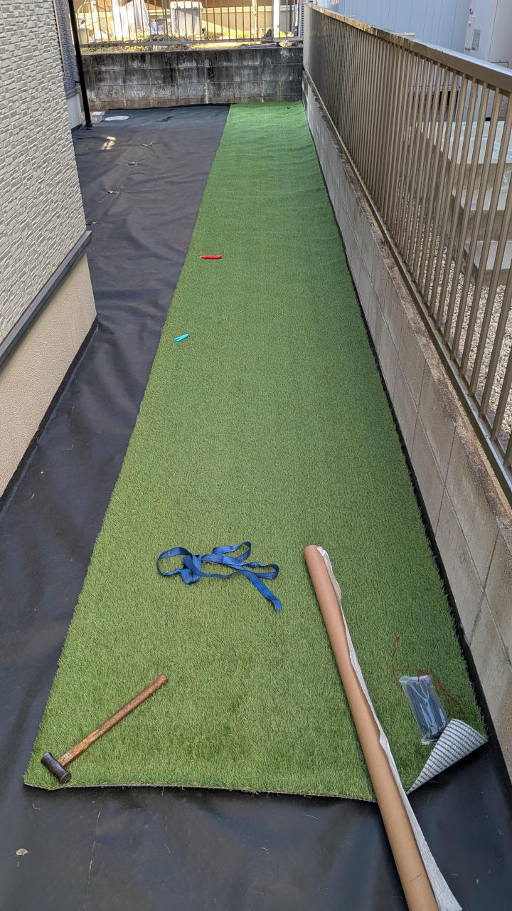 また、土地の形状に合わせて人工芝をカットするのも地味に大変。