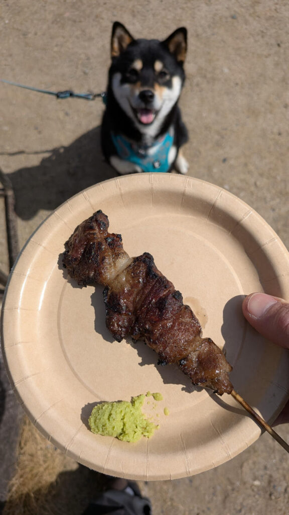 で、今日も食べ歩き(笑)。まずは牛串。やってるのかやってないのかイマイチよく分からなかったけど、柔らかくてうまかった。