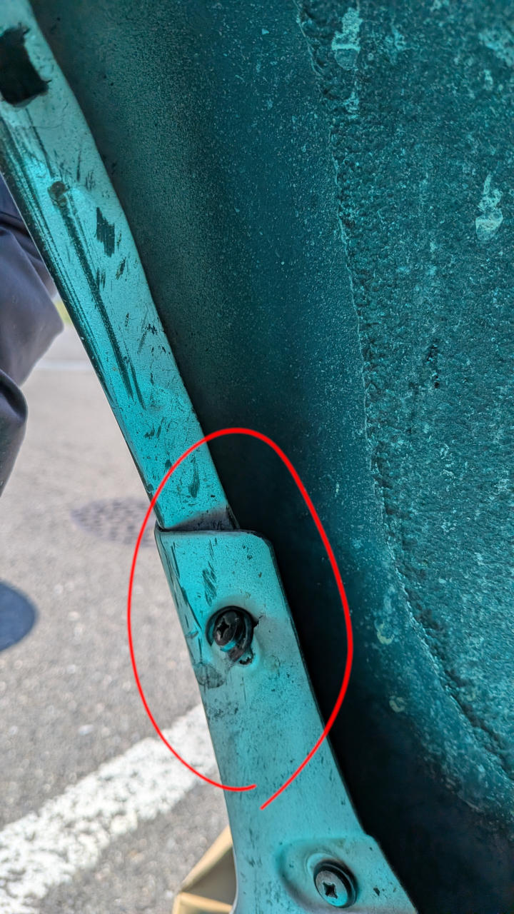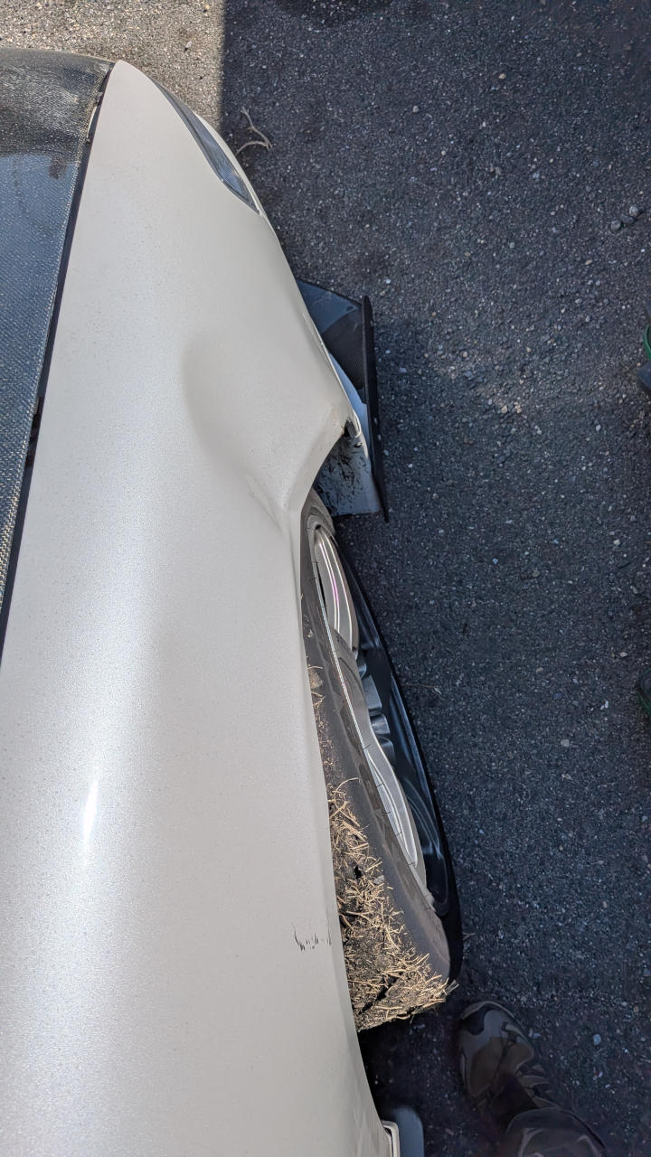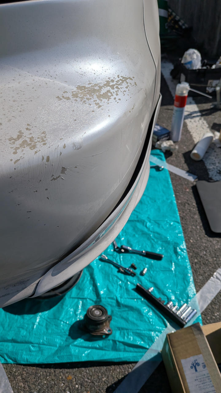 - リアアンダー(三角のヤツ)のフェンダー側固定部が曲がって、その影響で側面が浮いちゃってる