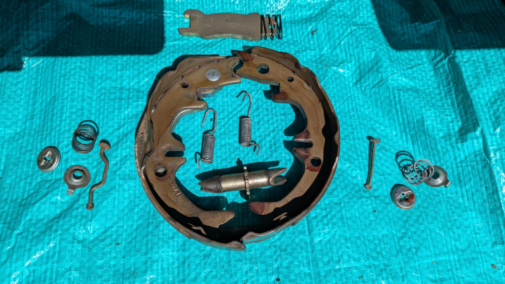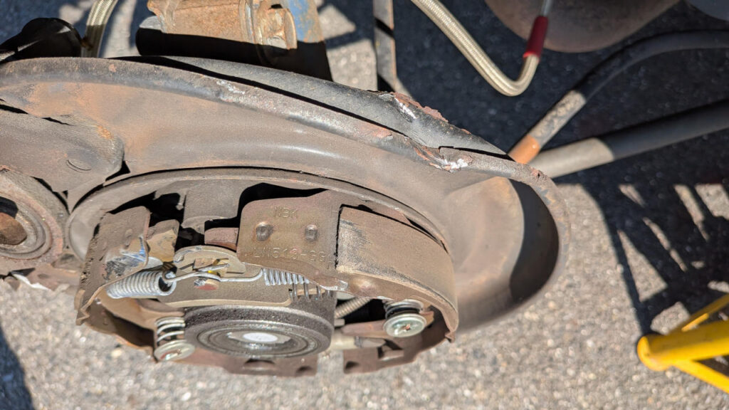 - サイドブレーキのシューが変形してる