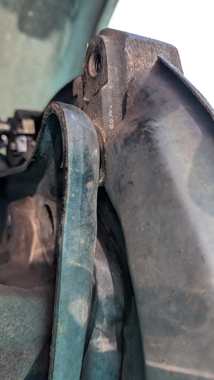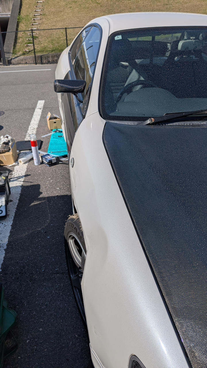- 吊り上げ時の試行錯誤でフロントフェンダーにロープが食い込んで凹んでる