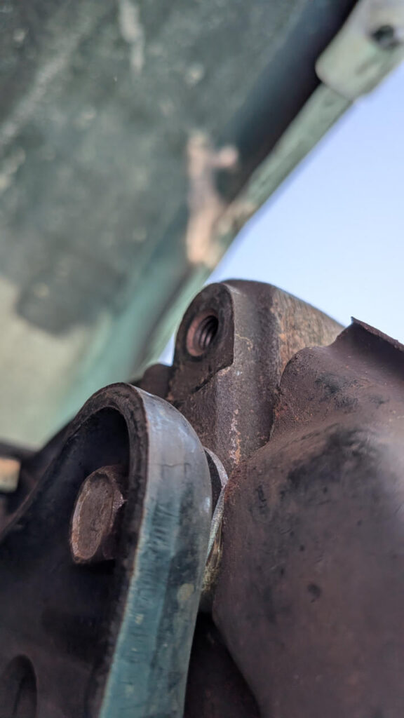 車体下にもぐりこんで、ラリー気分でハンマーでどついてみたけど、そう簡単には戻らないので、適当なワッシャーを挟んで隙間を埋めてボルト止めしてみたら、辛うじて干渉を回避することができた。